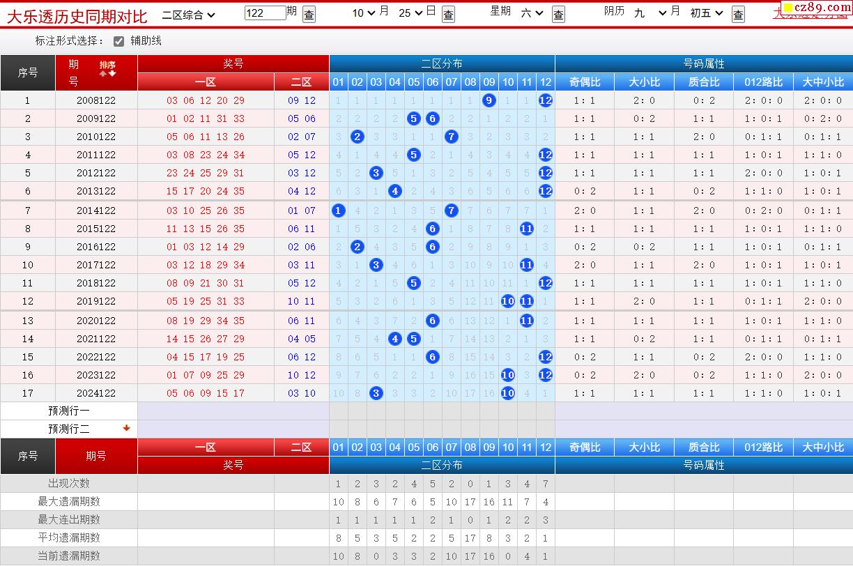 122期大乐透历史同期对比图